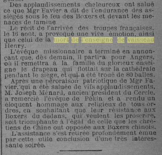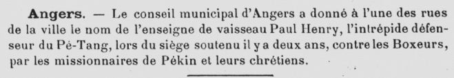 Paul Henry, défenseur de la Mission de Pékin », éd. A. Mame & Fils,
