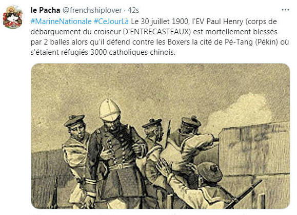fut tué lors de la défense de la cathédrale du Pé-Tang le 30 Juillet