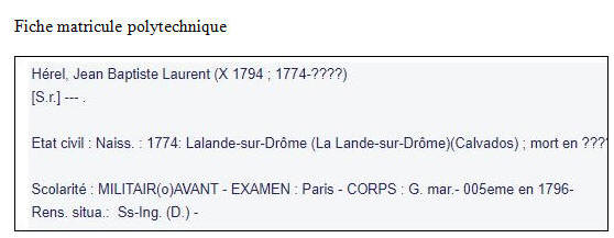 Né en 1774 à LALANDE sur DROME (Calvados) - Décédé le 9 janvier 1811