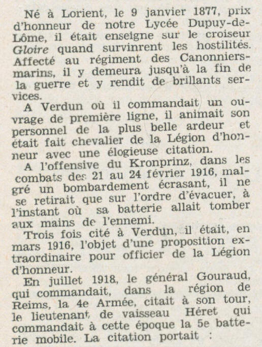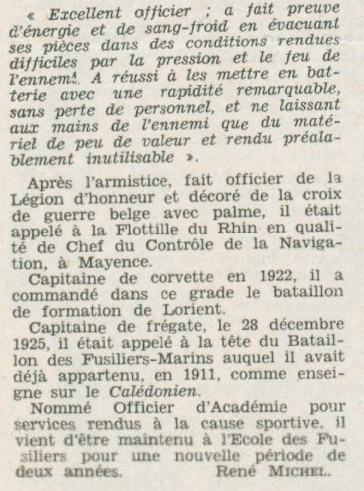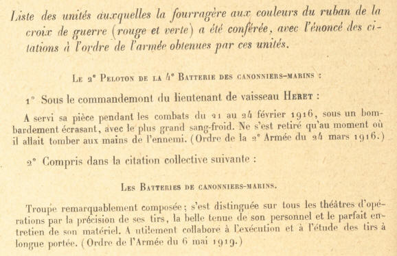 Cité à l'ordre de l'Armée navale en décembre 1915 : "Ayant déjà