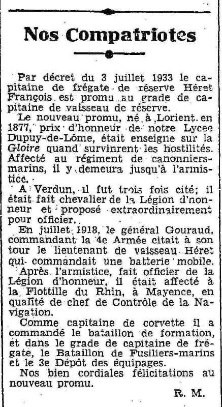 Capitaine de vaisseau de réserve le 3 juillet 1938