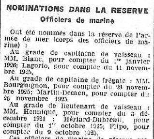 réserve le 1er octobre 1925, port ROCHEFORT.