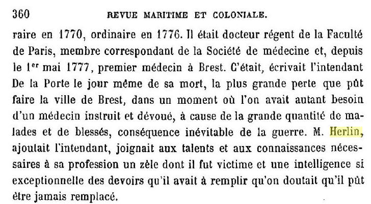 1er mai 1777 : il est nommé premier médecin de la marine à Brest.
