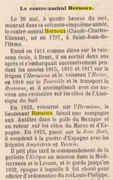 1833, Capitaine de corvette, Officier de la Légion d'Honneur (14
