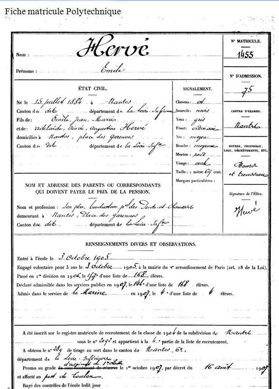 Élève de l'École polytechnique en 1905, opte pour la Marine.