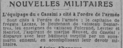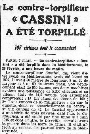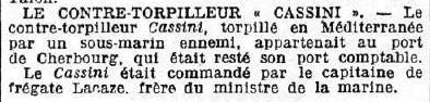 "CASSINI", il disparait avec le bâtiment qui saute sur une mine.