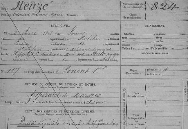 Né le 2 août 1868 à LORIENT (Morbihan)