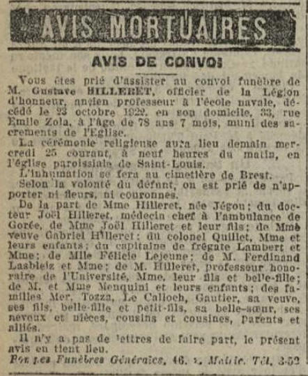(Charente-Maritime) - Décédé le 23 octobre 1922 à BREST (Finistère)