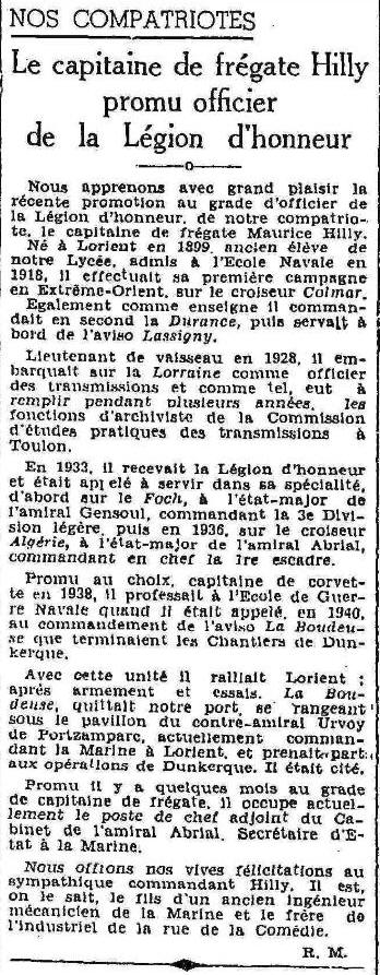 Hilly. Mécanicien principal de la Marine Nationale. Né le 10 juillet
