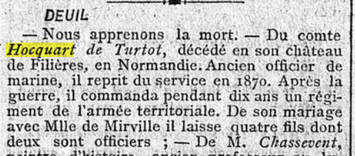 nom HOCQUART celui de de TURTOT pour s'appeler HOCQUART de TURTOT,