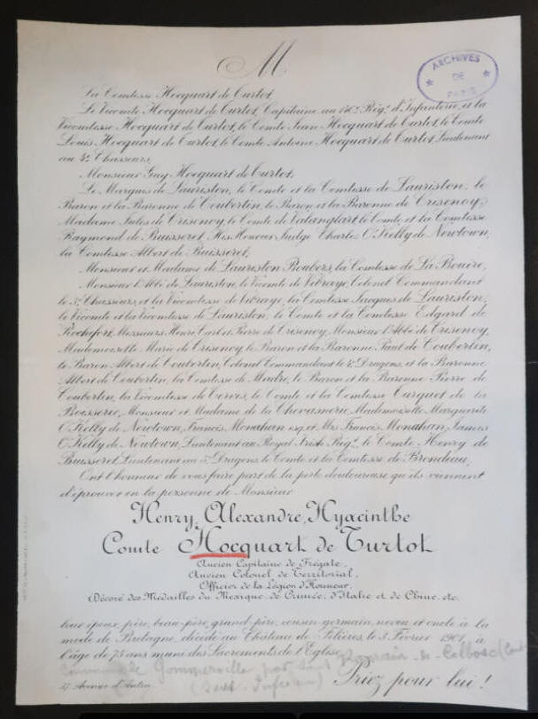 Hocquart et de Coralie Eugénie LAW de LAURISTON, son épouse