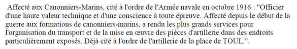 Affecté aux Canonniers-Marins, cité à l'ordre de l'Armée navale en