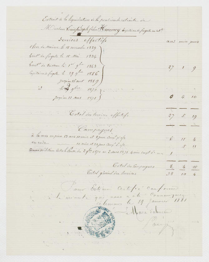 avec fortunée Marie Sophie OBRIET   Elève en novembre 1829 Lieutenant de frégate le 15 mai 1834 Lieutenant de vaisseau le 1er novembre