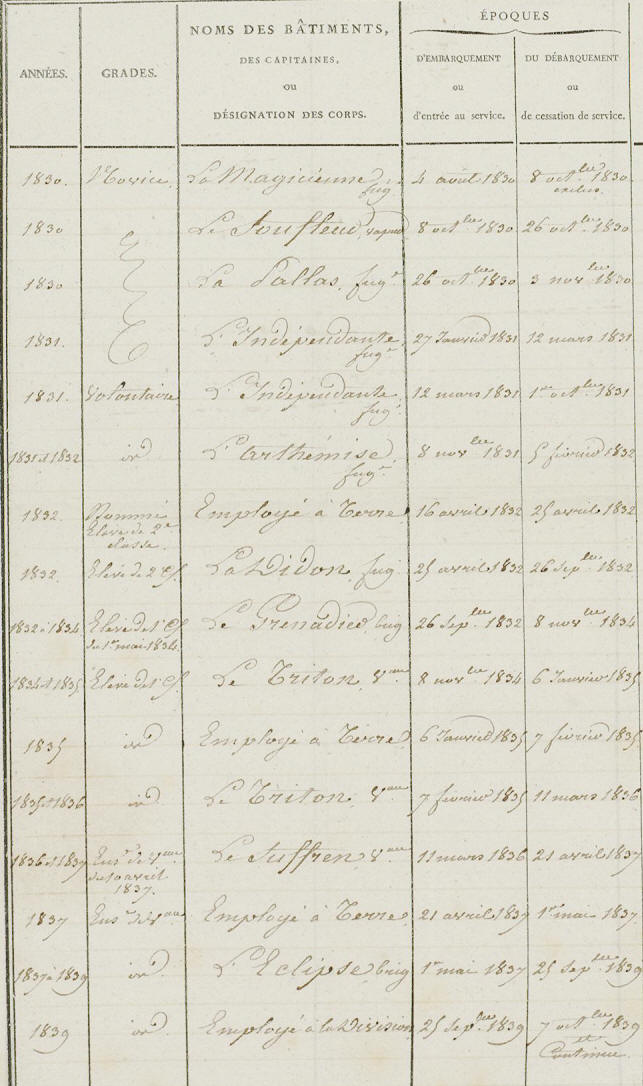 Entre dans la Marine en 1830, en tant que novice, n'est pas issu de
