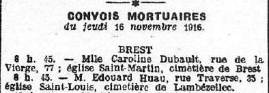 Né le 27 aout 1849 à BREST / LAMBEZELLEC - Décédé le 14 novembre