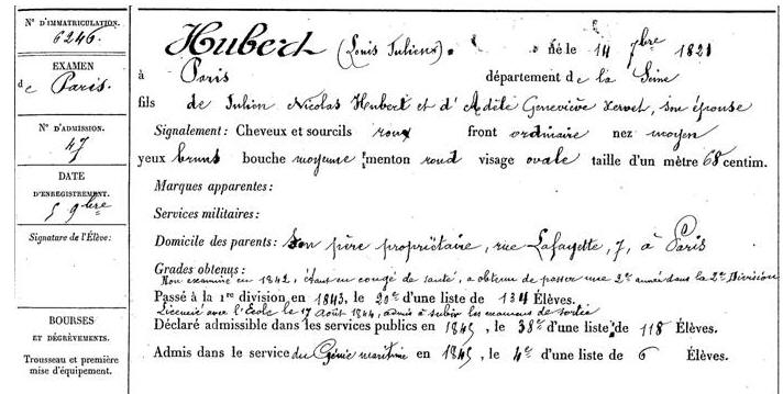 Elève de polytechnique du 1er novembre 1841 au 17 aout 1844