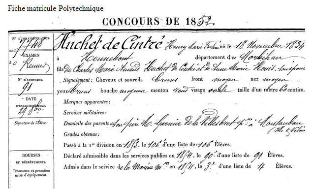 Élève de l'École polytechnique en 1852, opte pour la Marine.