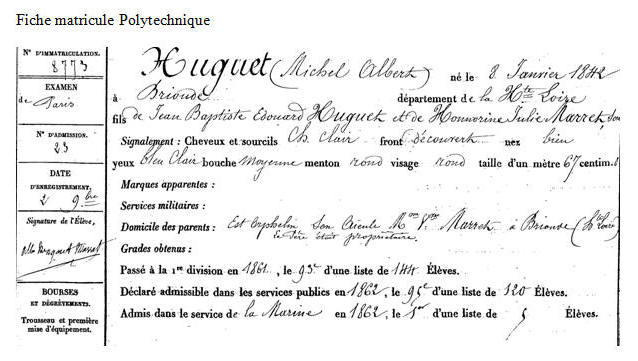 Élève de l'École polytechnique en 1860. Opte pour la Marine.