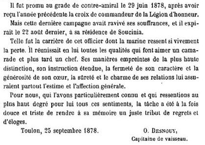 d'Honneur le 7 août 1877, étant sur le croiseur "SANÉ".