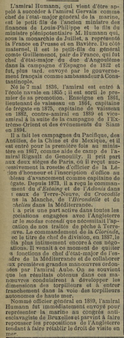 février 1894. Chef d'État-major général de la Marine, et Directeur