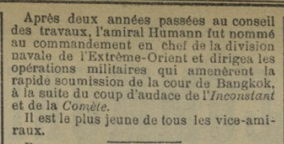 le 10 juillet 1882, alors Second sur la "CLORINDE", Division de