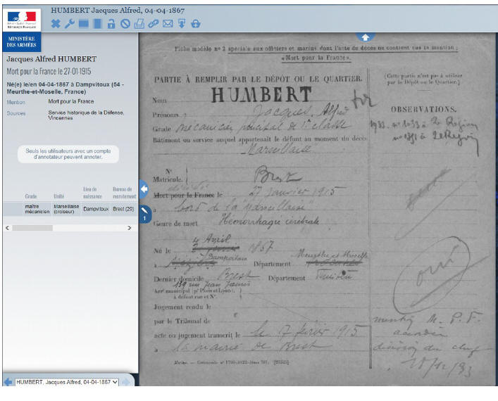 Officier déclaré Mort pour la France en 1914-18.