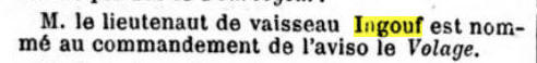 presse, en janvier 1885, nommé au commandement de la "JAVELINE" au