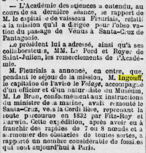 Santa Cruz de Patagonie sur l'aviso "LE VOLAGE"