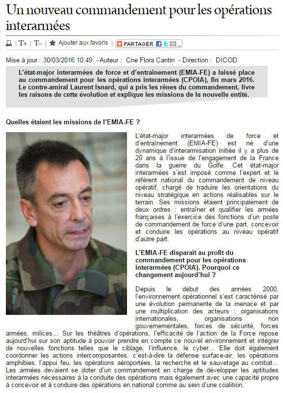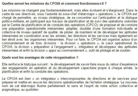 l'état-major des armées françaises (CPCO). Il a exercé la fonction