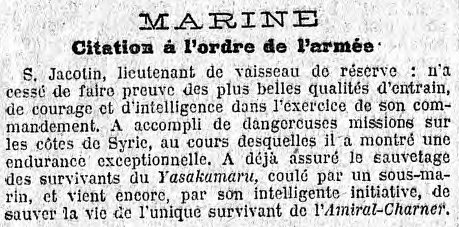 Commandant le "TUNISIEN", 3ème Escadre, Division de SYRIE.