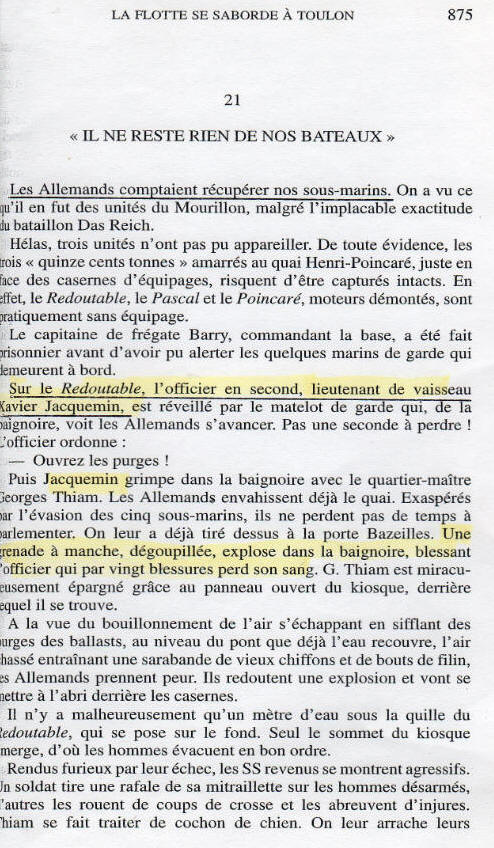 au sabordage de la Flotte à TOULON le 27 novembre 1942