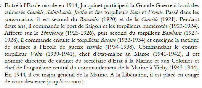 Entré à l’Ecole navale en 1914, Jacquinet participe à la Grande