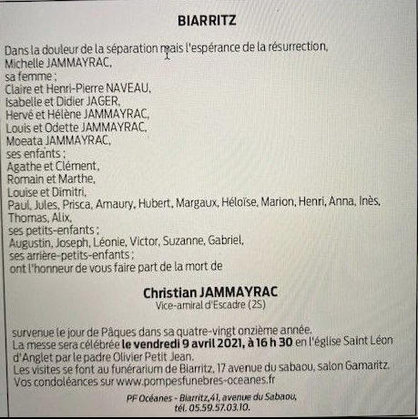 BORDEAUX (Gironde) - Décédé le 4 avril 2021 à BIARRITZ (Pyrénées