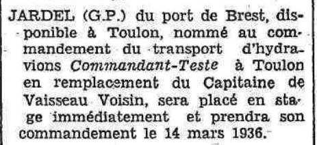 résidence à TOULON, détaché auprès du Colonel, Chef des Services de