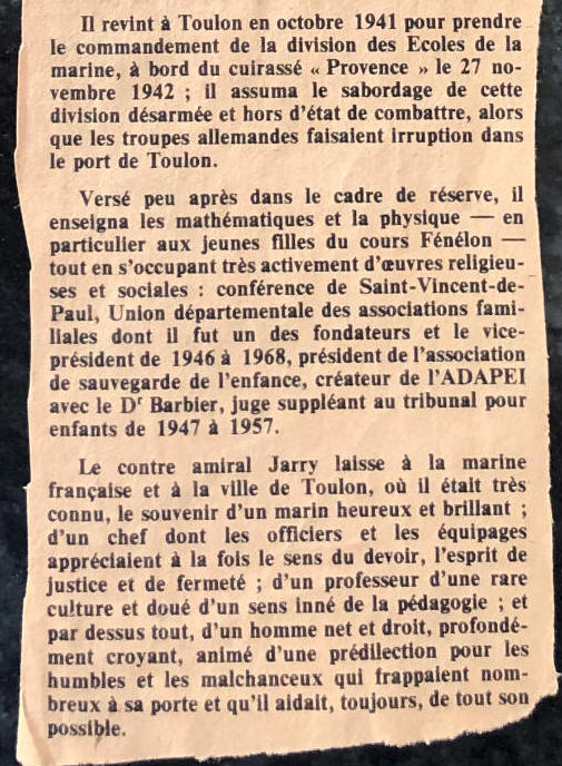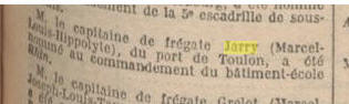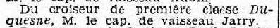 - Contre-amiral Jarry (EN 1905), adjoint au préfet maritime de la