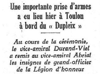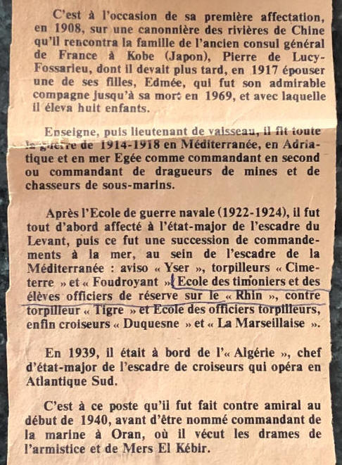 sur le cuirassé "FRANCE" à l'État-Major de la 1ère Division