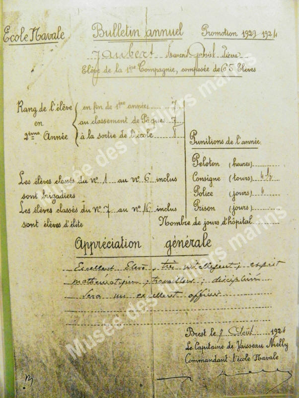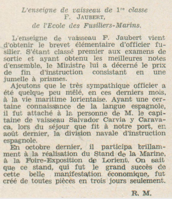des fusiliers marins de Lorient en septembre 1936, il obtient son