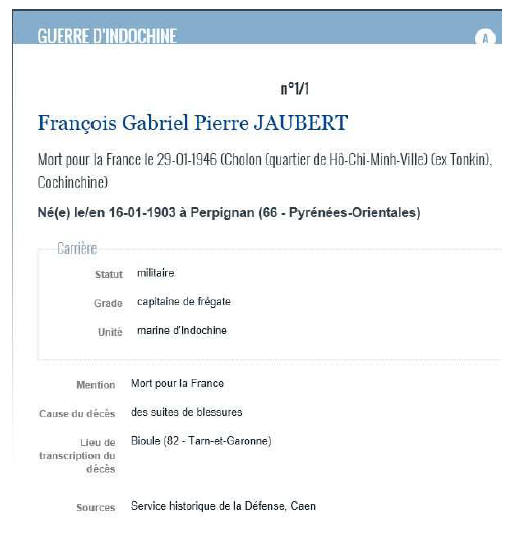 Blessé le 25 janvier 1946 devant TAN-U-YEN (Cochinchine). Mort pour la France le