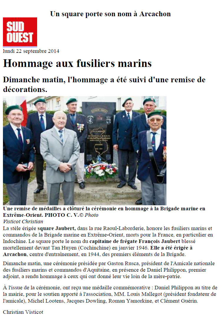 Cérémonie d'hommage au Capitaine de frégate JAUBERT, qui donna son