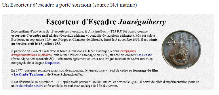 En 1893, fut lancé le cuirassé Jauréguiberry puis en 1955