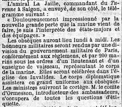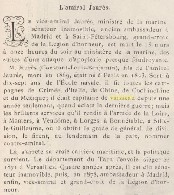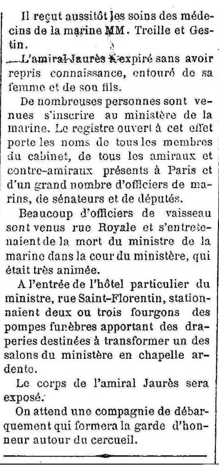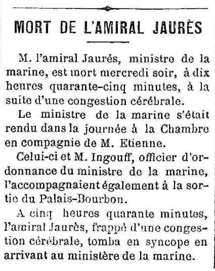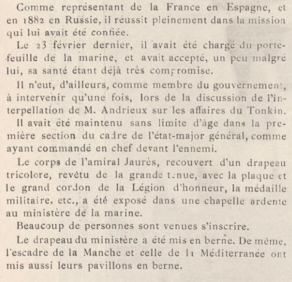 de la Marine 23 février 1889) et mourut à ce poste moins d'un mois