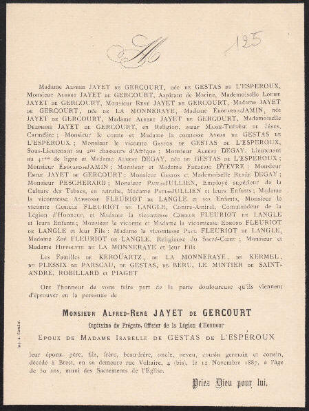 - Décédé le 12 novembre 1887 à BREST (Finistère)