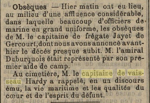 (nomination du 22 novembre 1884), Commandant le croiseur de 3ème