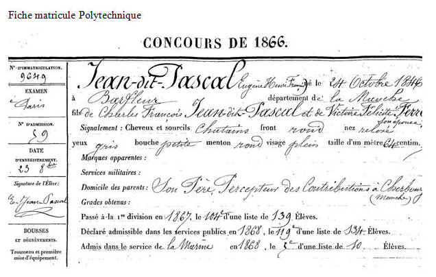 Élève de l'École polytechnique en 1866; opte pour la Marine.