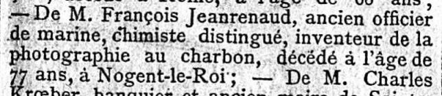 PARIS (Seine) - Décédé le 27 novembre 1895 à NOGENT-le-ROI