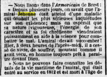 à SAINT-MALO-de-la-LANDE (Manche) - Décédé le 29 mai 1863 à BREST