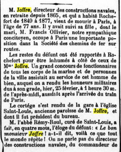 Extrait Les Tablettes des Deux-Charentes / 27 février 1878)