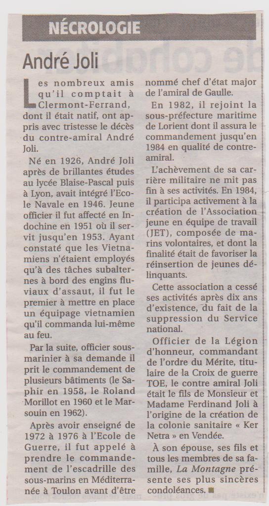 Né le 29 novembre 1926 à CLERMONT FERRAND (Puy de Dôme) - Décédé le 7 aout 2012