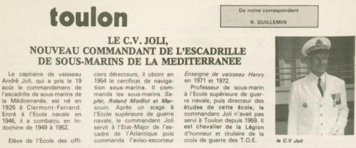 Lieutenant de vaisseau le 1er janvier 1956. Idem au 1er janvier