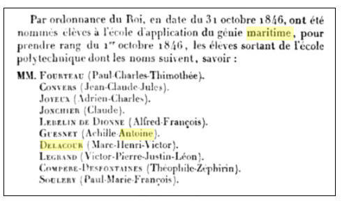 Sous-ingénieur de 3ème classe le 10 juin 1848, port TOULON